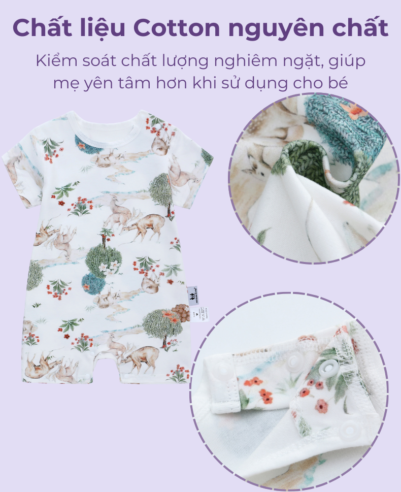 và nhiều chứng chỉ Châu Âu khác.- Jumpsuit có nút bấm chắc chắn và tiện lợi để mẹ thuận tiện trong việc thay tã hoặc bé đi vệ sinh.