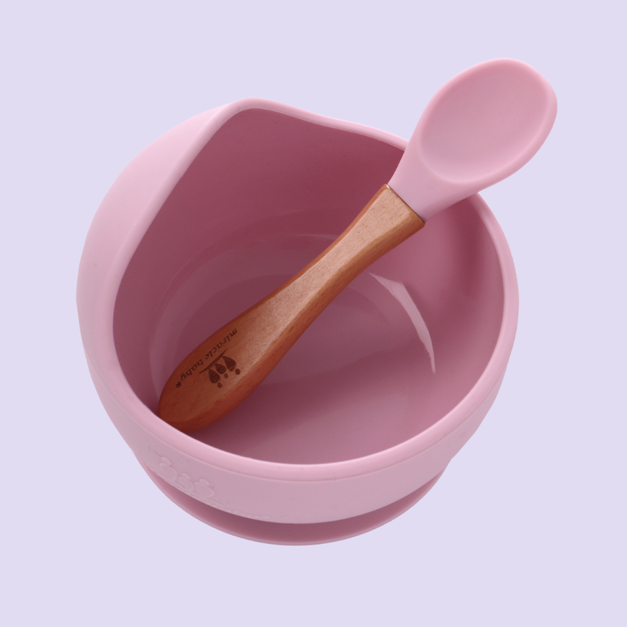Chén ăn dặm silicone Miraclebaby và muỗng phù hợp dành bé trai, bé gái trên 5 tháng tuổi