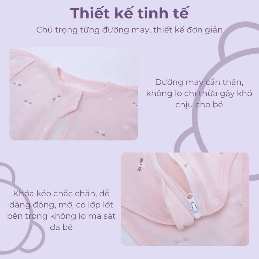 MiracleBaby - Nhộng chũn hở chân chất liệu Cotton cho bé từ 0 - 3M co giãn, mềm mại, thoáng khí và thấm hút tốt