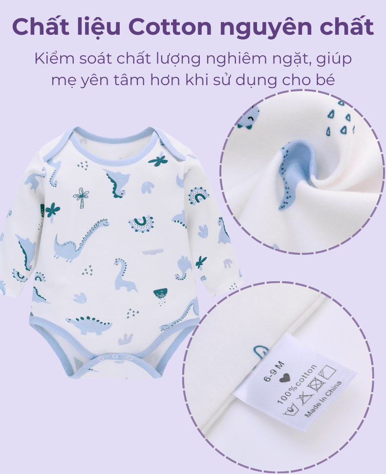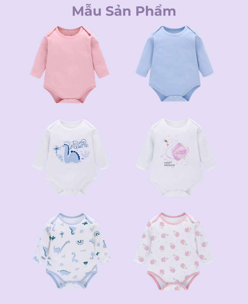 Bodysuit/Jumsuit ngắn TAY DÀI cho bé chất liệu Cotton nguyên chất co giãn tốt phù hợp cho bé từ 0-12 tháng
