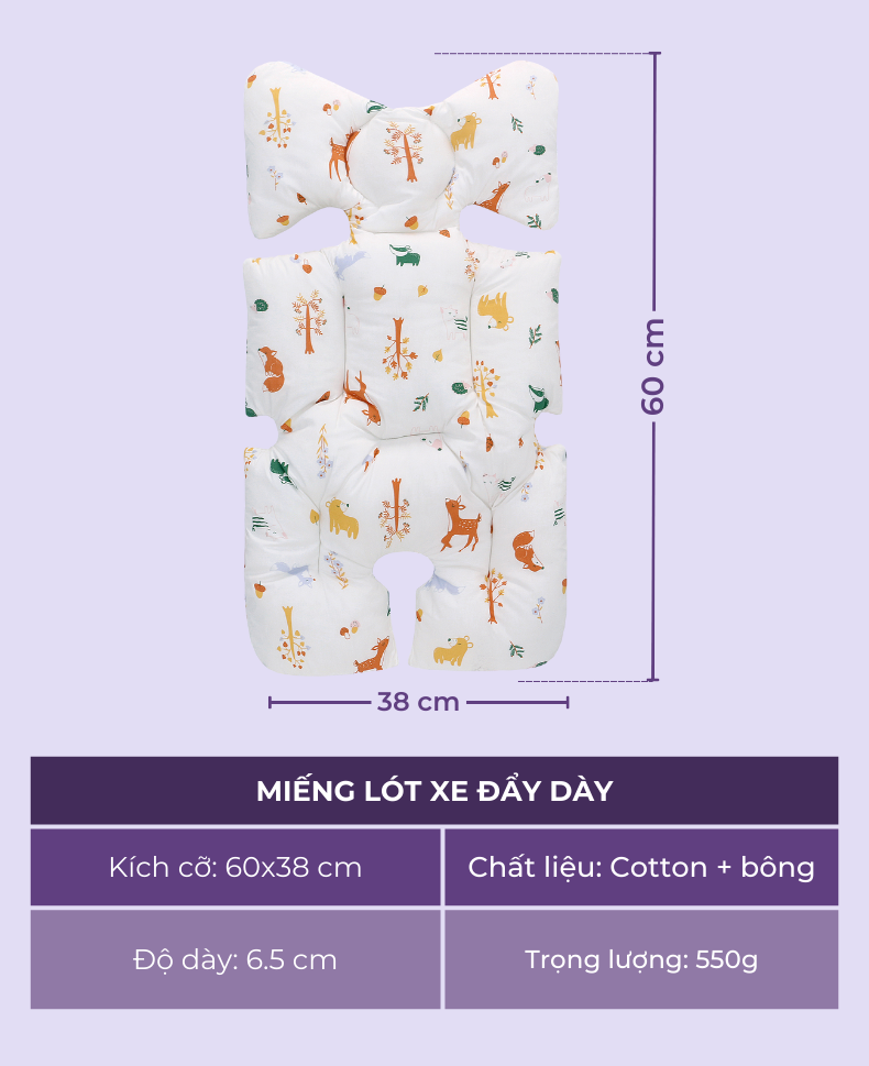 Miếng lót xe đẩy dày 6.5cm đệm Cotton dày dặn, phụ kiện xe đẩy êm ái cho bé