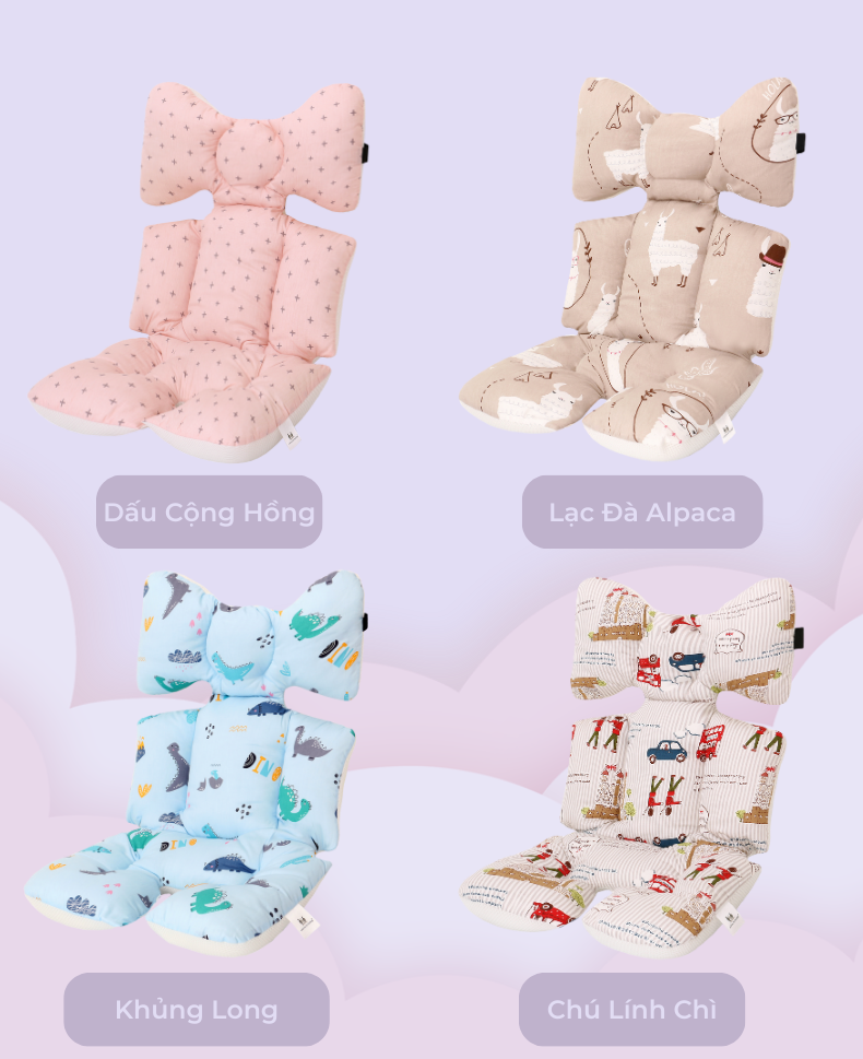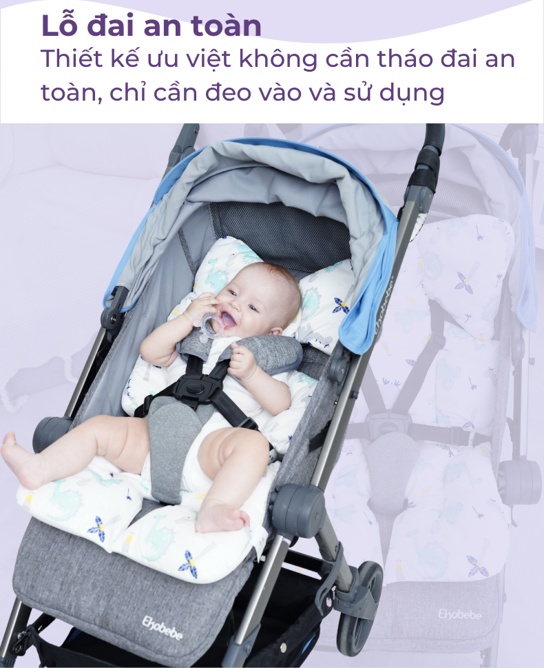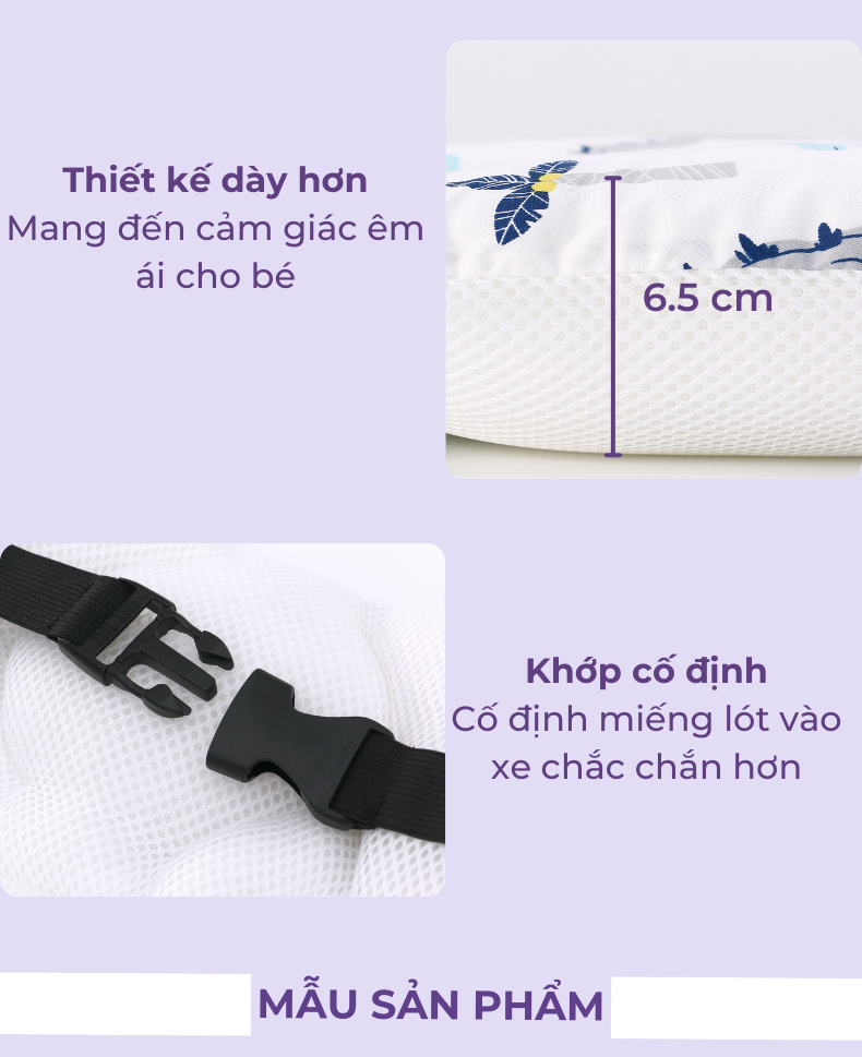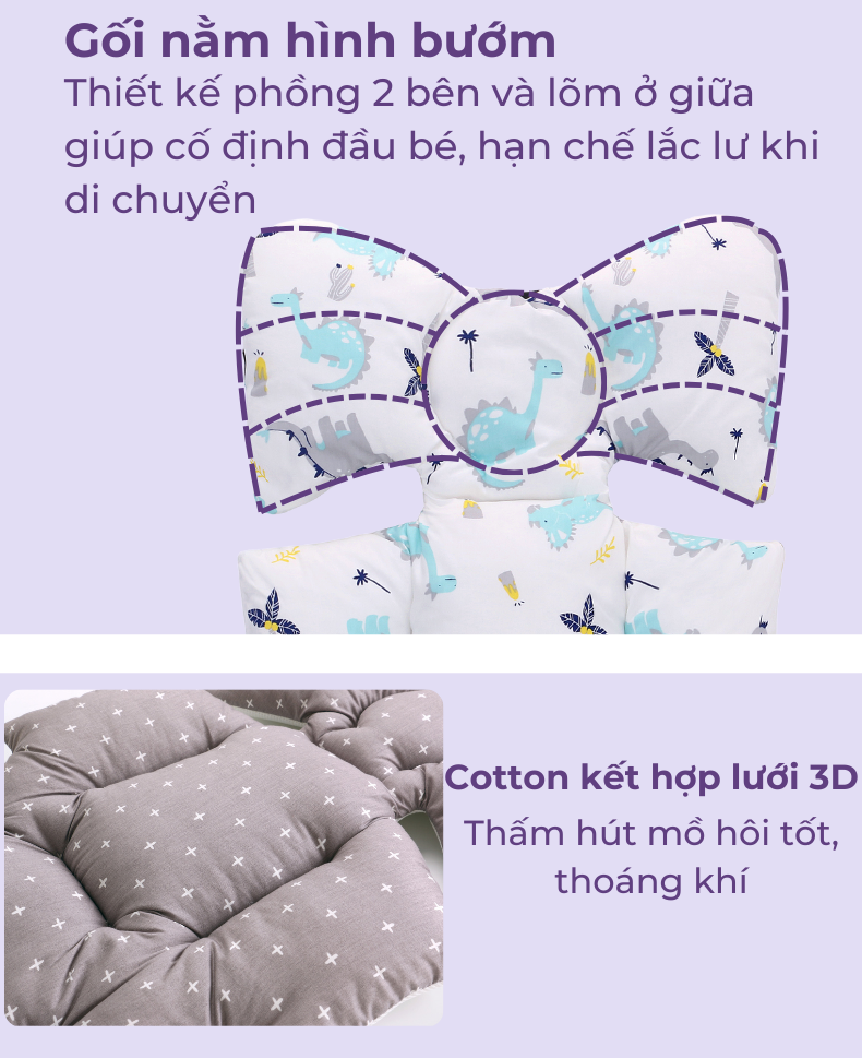 ✔️ Điểm tựa đầu miếng lót xe đẩy cho bé được thiết kế theo kiểu gối định hình đầu cho bé, hạn chế rung lắc