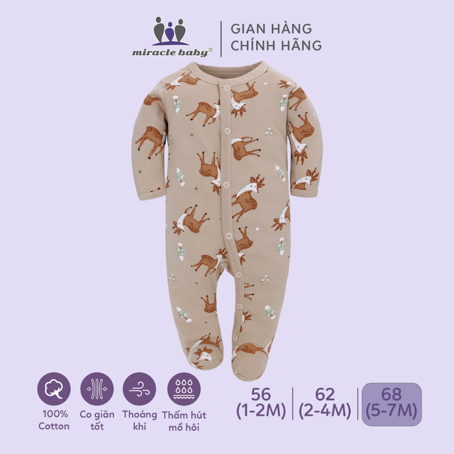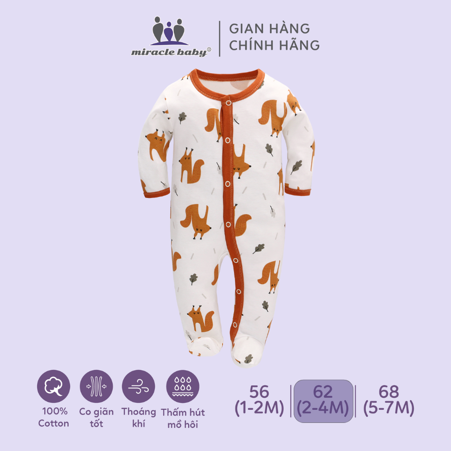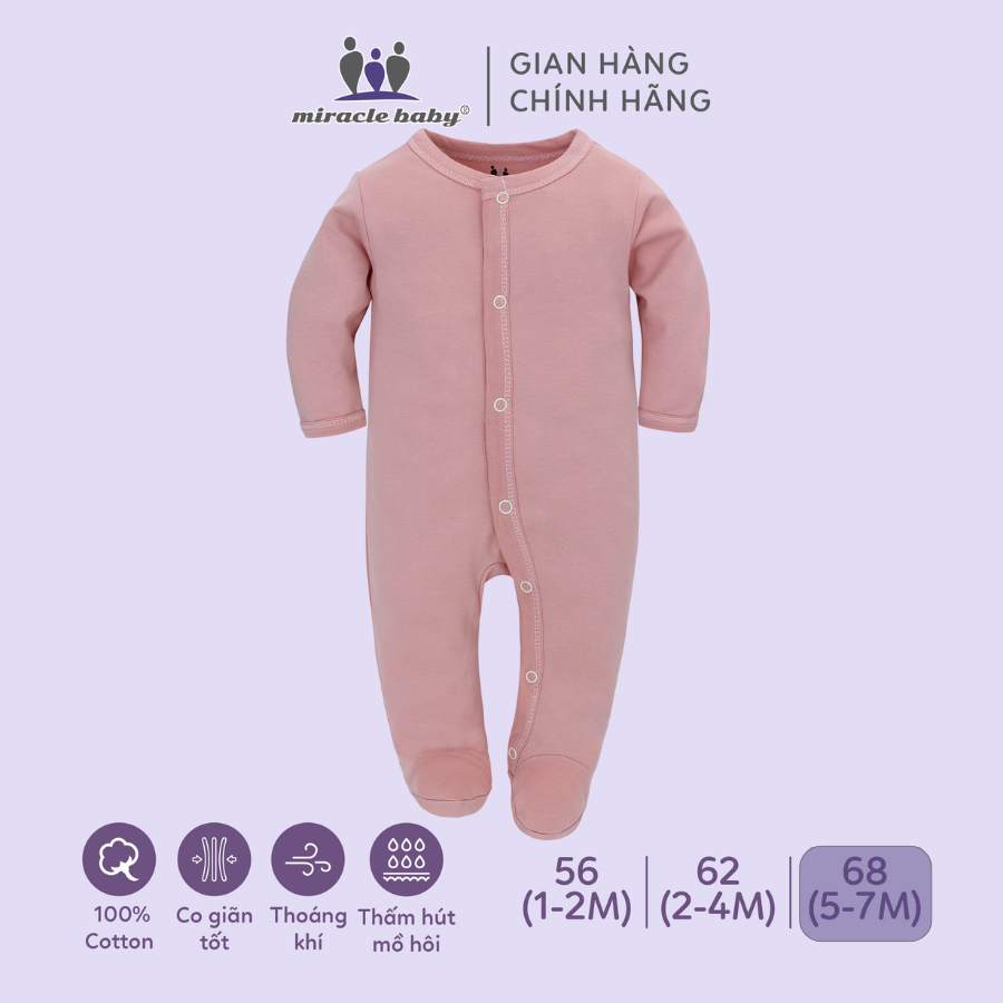 Bodysuit áo quần liền thân NÚT BẤM cho bé chất liệu Cotton thương hiệu Miraclebaby từ 1 đến 7 tháng tuổi